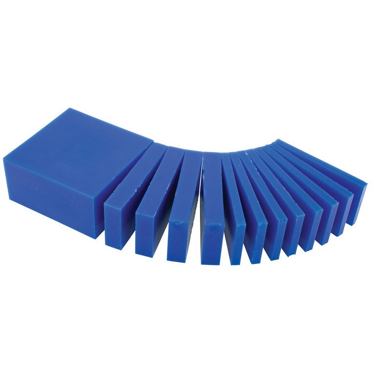 Bloque de cera color azul de 1 libra (454 g). Especialmente indicada para realizar modelos de formas diversas para joyería y bisutería. Se suministra cortado en diferentes medidas.